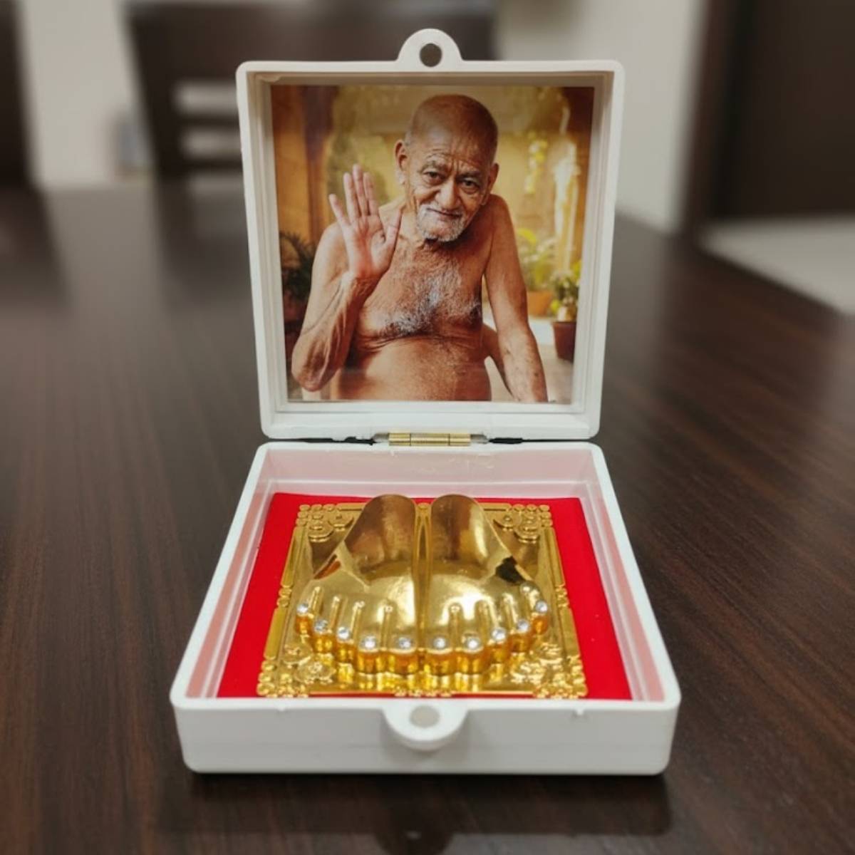 - Acharya Shree Vidyasagarji Maharaj Photo With Charan White Deluxe Box/Peti (Size - 3.5 x 3.5 inch)