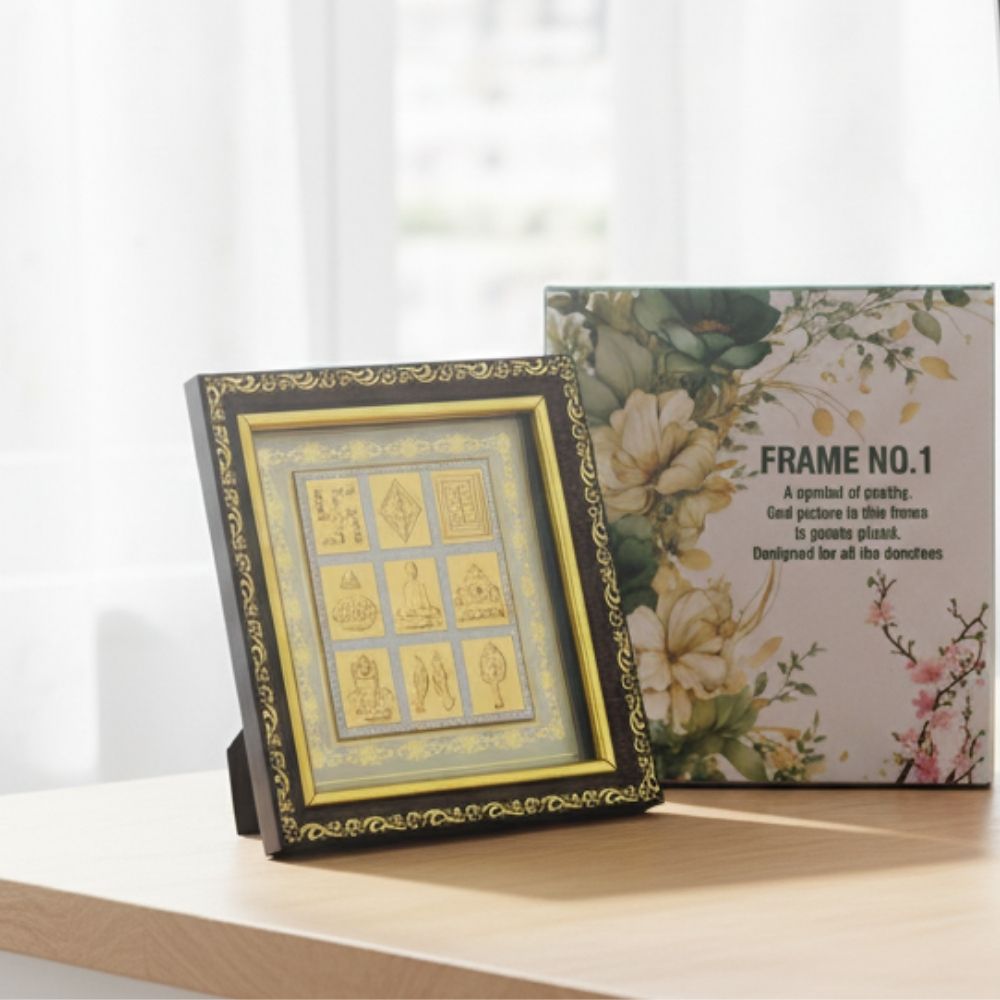Ashtmangal Darshan Frame एक सुंदर उपहार वस्तु है, जो प्रभावना या किसी विशेष अवसर के लिए उपयुक्त है। इसमें सोने की परत चढ़े अष्टमंगल प्रतीकों के साथ बीच में भगवान का मनोहर चित्र बना है, जो शांति और पवित्रता लाता है। यह फ्रेम सोने के चमकदार रंग में डिज़ाइन किया गया है, जो इसे शाही आकर्षण प्रदान करता है। इसे अपने डेस्क, कमरे, ऑफिस या पूजा क्षेत्र में रख सकते हैं। इसका छोटा आकार इसे ले जाने या प्रियजनों को भेंट करने में आसान बनाता है। यह एक विचारशील उपहार है, जो जैन मूल्यों और आशीर्वाद को हर जगह फैलाता है!