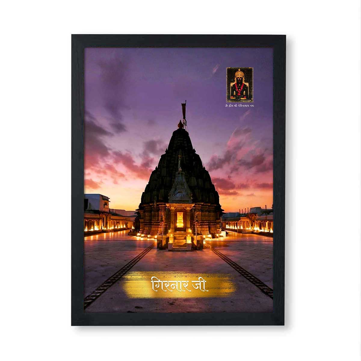 यह फ्रेम श्री गिरनार जी महातीर्थ को समर्पित है, जहाँ जैन धर्म के 22वें तीर्थंकर भगवान नेमिनाथ ने मोक्ष प्राप्त किया। गिरनार पर्वत जैन परंपरा में अत्यंत पावन और ऐतिहासिक स्थल माना जाता है, और यह चित्रण श्रद्धालुओं को उस दिव्य स्थान की स्मृति दिलाता है जहाँ अनगिनत साधु‑साध्वियों ने तपस्या की। इस फ्रेम को अपने पूजा स्थल पर स्थापित करने से घर में आध्यात्मिक शांति और तीर्थदर्शन का पुण्य वातावरण अनुभव होता है।