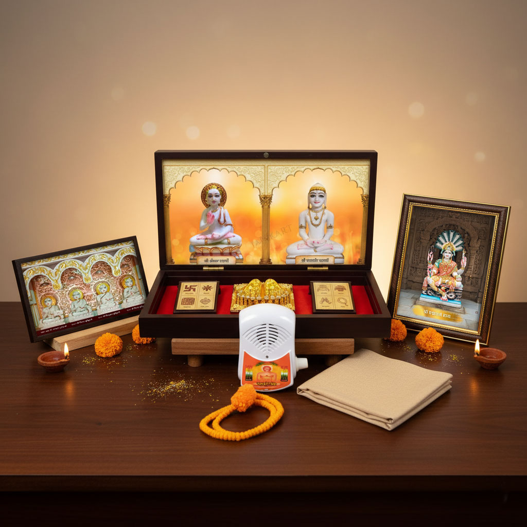 1️⃣ दिवाली स्पेशल गौतम स्वामी और महावीर भगवान रॉयल बॉक्स – दिव्य प्रकाश से युक्त यह बॉक्स पूजन स्थल को पवित्रता और शांति से भर देता है।
