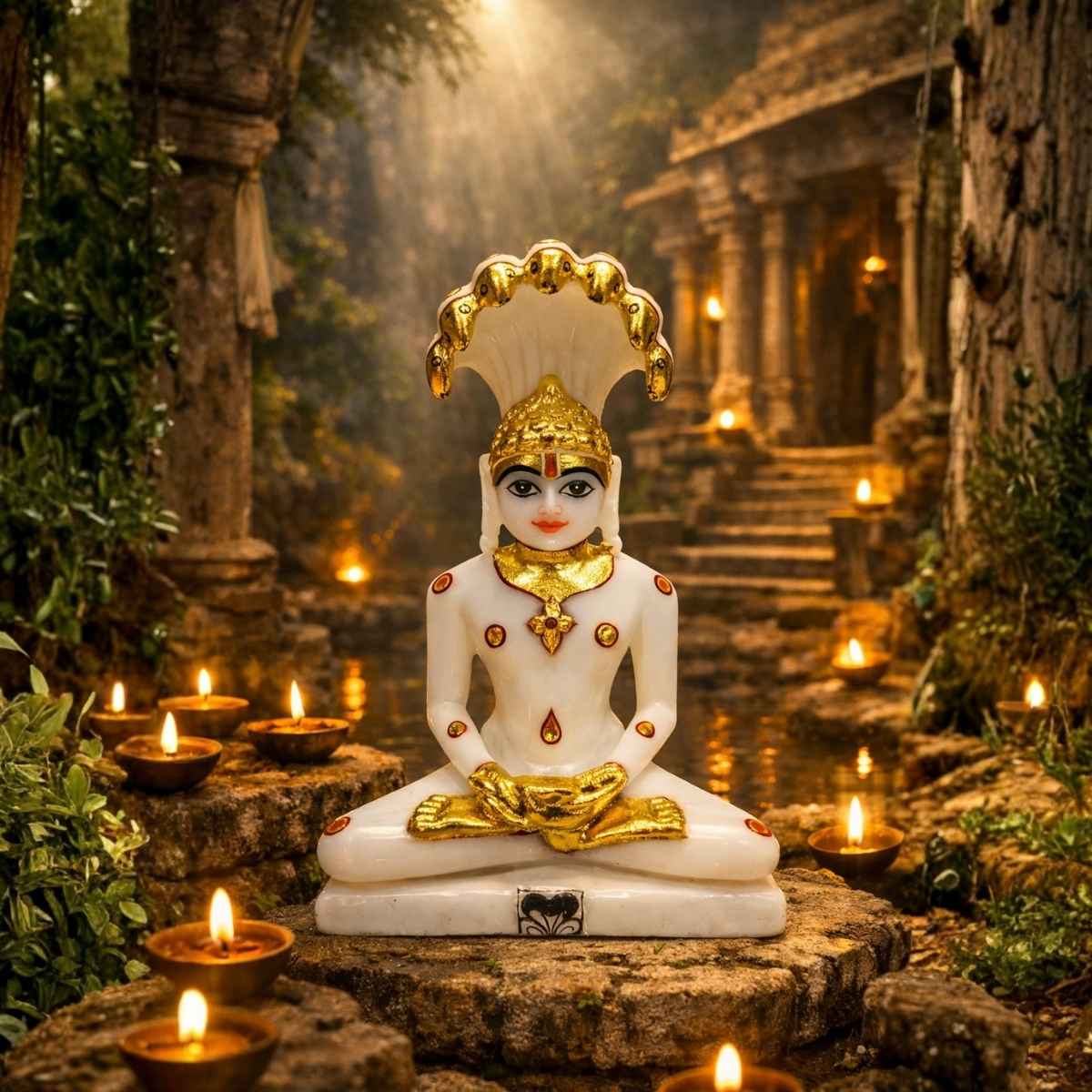 White-Golden Parshwanath Bhagwan Idol (Size - 9 inches)