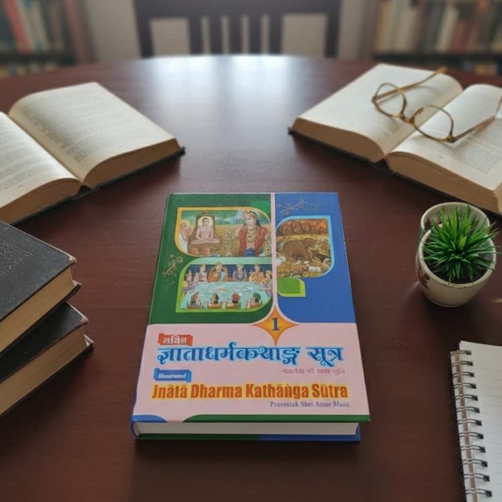 सचित्र श्री ज्ञाता धर्मकथाङ्ग सूत्र (भाग 1 एवं 2) प्रवर्तक श्री अमर मुनि द्वारा संकलित यह ग्रंथ जैन आगम साहित्य का एक महत्वपूर्ण अंग है। इसमें भगवान महावीर द्वारा कथित बोधप्रद दृष्टान्तों, रूपकों और शिक्षाप्रद कथाओं को सरल एवं सुबोध शैली में प्रस्तुत किया गया है। दोनों भागों में इन प्रसंगों को रंगीन चित्रों के माध्यम से सजाया गया है, जिससे कठिन विषय भी सहज और रोचक बन जाते हैं। यह ग्रंथ न केवल धार्मिक और सांस्कृतिक दृष्टि से मूल्यवान है, बल्कि साधकों, विद्यार्थियों और श्रद्धालुओं के लिए जीवन निर्माणकारी मार्गदर्शन भी प्रदान करता है। स्वाध्याय, पाठशालाओं और ज्ञान शिविरों के लिए यह पुस्तक अत्यंत उपयोगी है और जैन धर्म के गूढ़ सिद्धांतों को समझने का श्रेष्ठ साधन है।