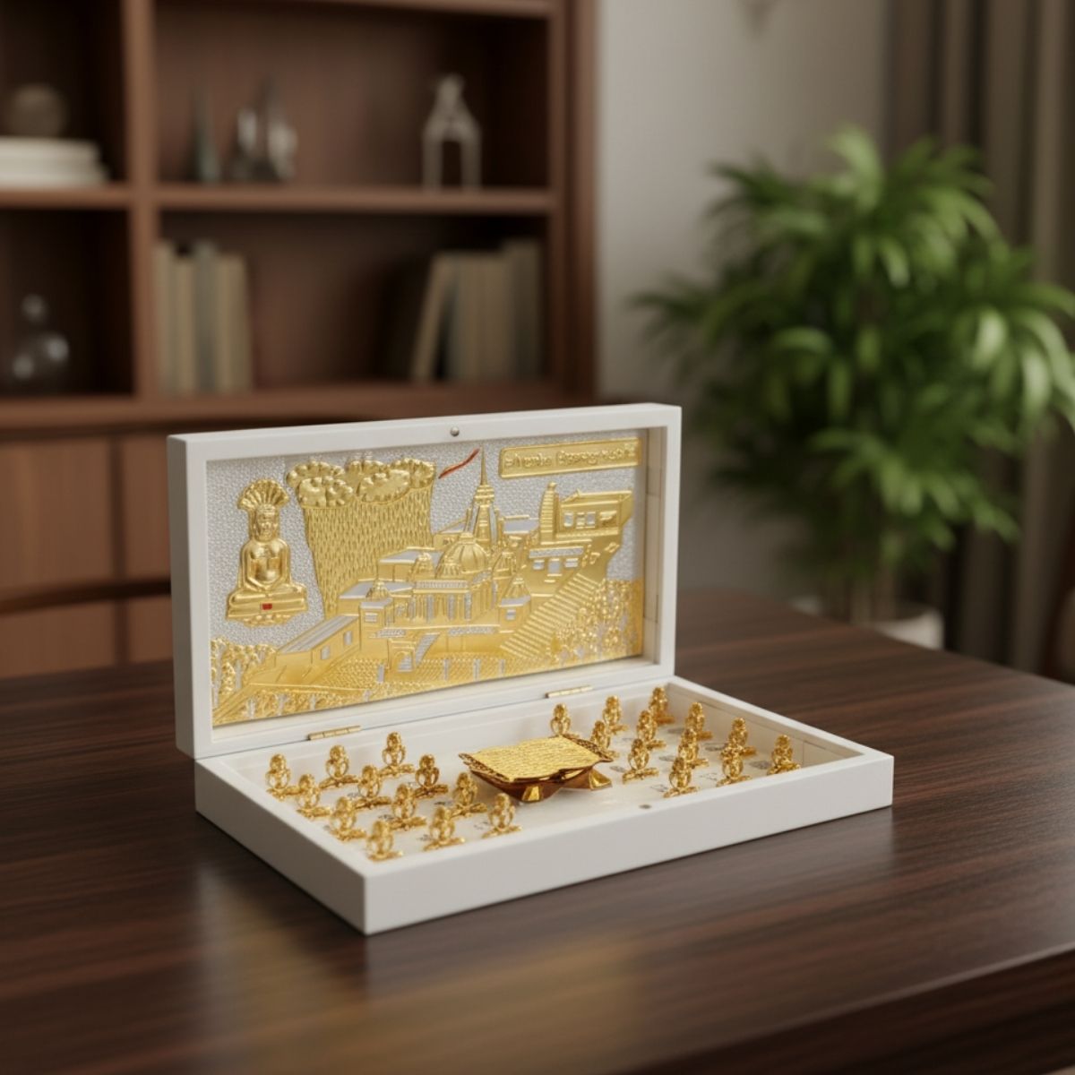 यह विशेष White Royal Box जैन धर्म के सबसे पवित्र स्थल श्री सम्मेद शिखर जी तीर्थ और 24 तीर्थंकर भगवानों की दिव्य प्रतिमाओं को समर्पित है। इसमें सुनहरे आभूषणों जैसी सुंदर नक्काशी के साथ भगवान की आराधना के लिए अद्भुत प्रस्तुति की गई है।