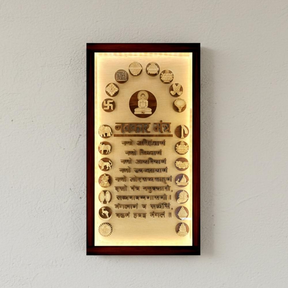 - Wooden Engraved Navkar Mantra Frame (Size - 26 x 14 inches)